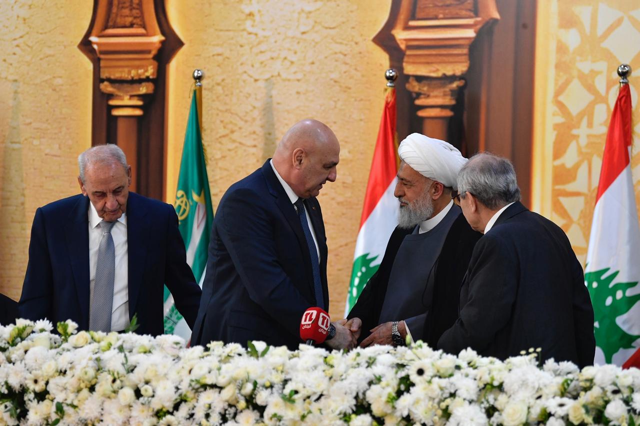 وكان نائب رئيس العلامة الشيخ علي الخطيب في استقبال كبار الضيوف، الرؤساء الثلاثة والرؤساء الروحيين، ورؤساء الحكومات السابقين نجيب ميقاتي وفؤاد السنيورة وتمام سلام وحسان دياب ،والسيد فادي فواز ممثلا الرئيس سعد الحريري،ونائب رئيس مجلس النواب الياس أبو صعب ونائب رئيس مجلس الوزراء طارق متري.