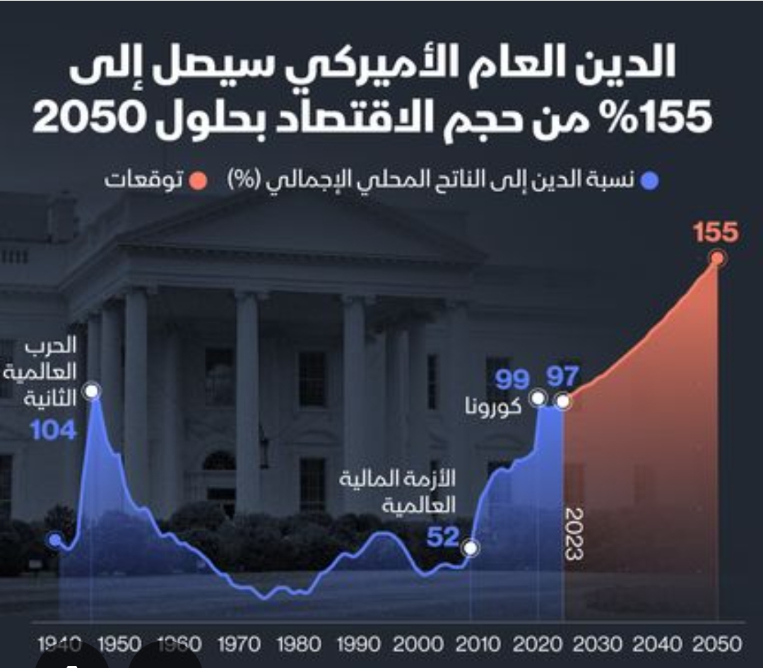 لقد شهدت نسبة الدين العام الى الناتج القومي ارتفاعًا ملحوظًا خلال السنوات الماضية ، حيث قفزت من حوالي 100% قبل الجائحة إلى فوق 120% خلال العام 2025 وتعود أسباب هذه القفزة إلى :