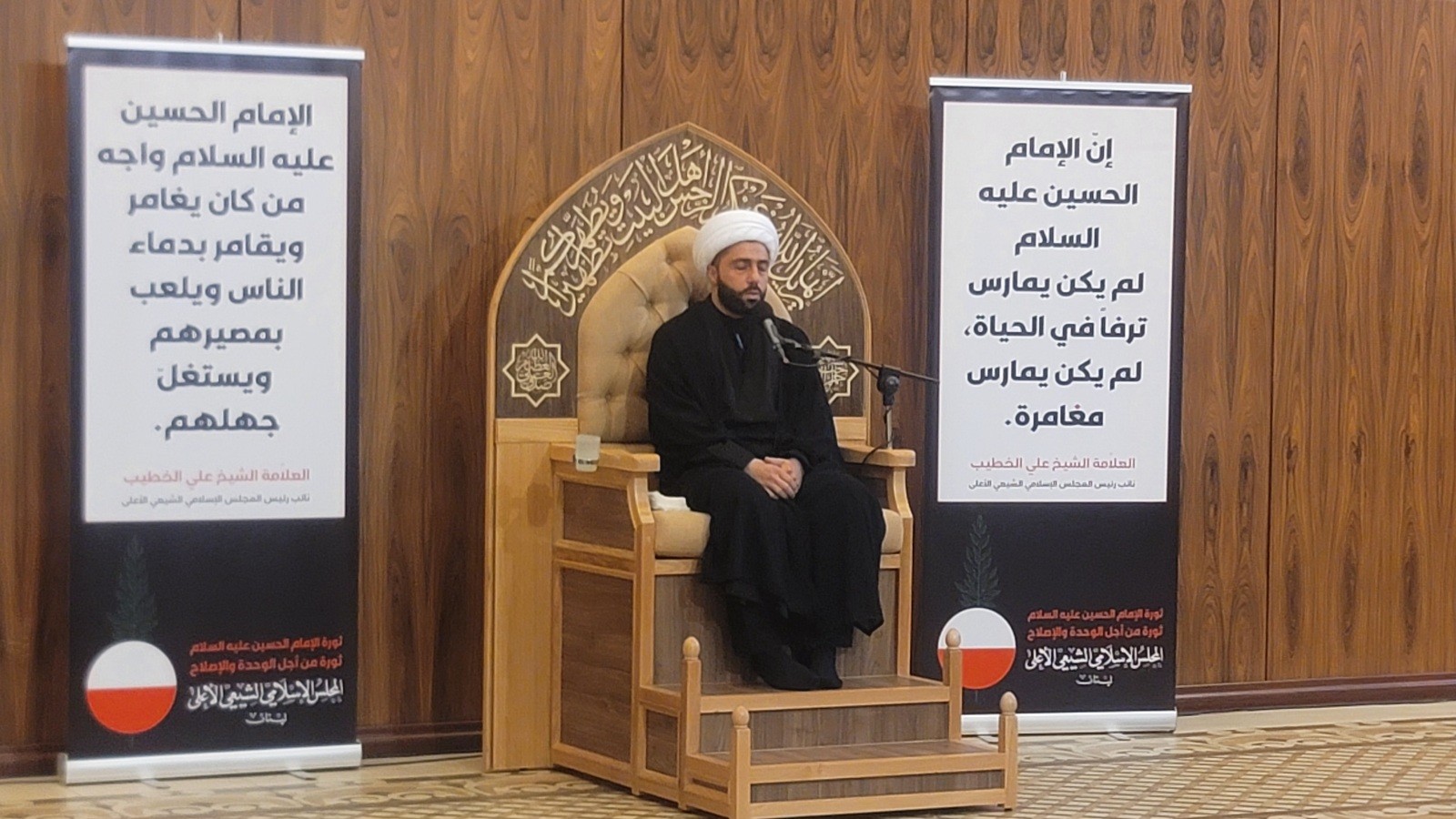 أدى العلامة الخطيب اليوم الصلاة في مقر المجلس على طريق المطار وألقى خطبة الجمعة التي استهلها بالحديث عن عاشوراء وثورة الإمام الحسين فقال: