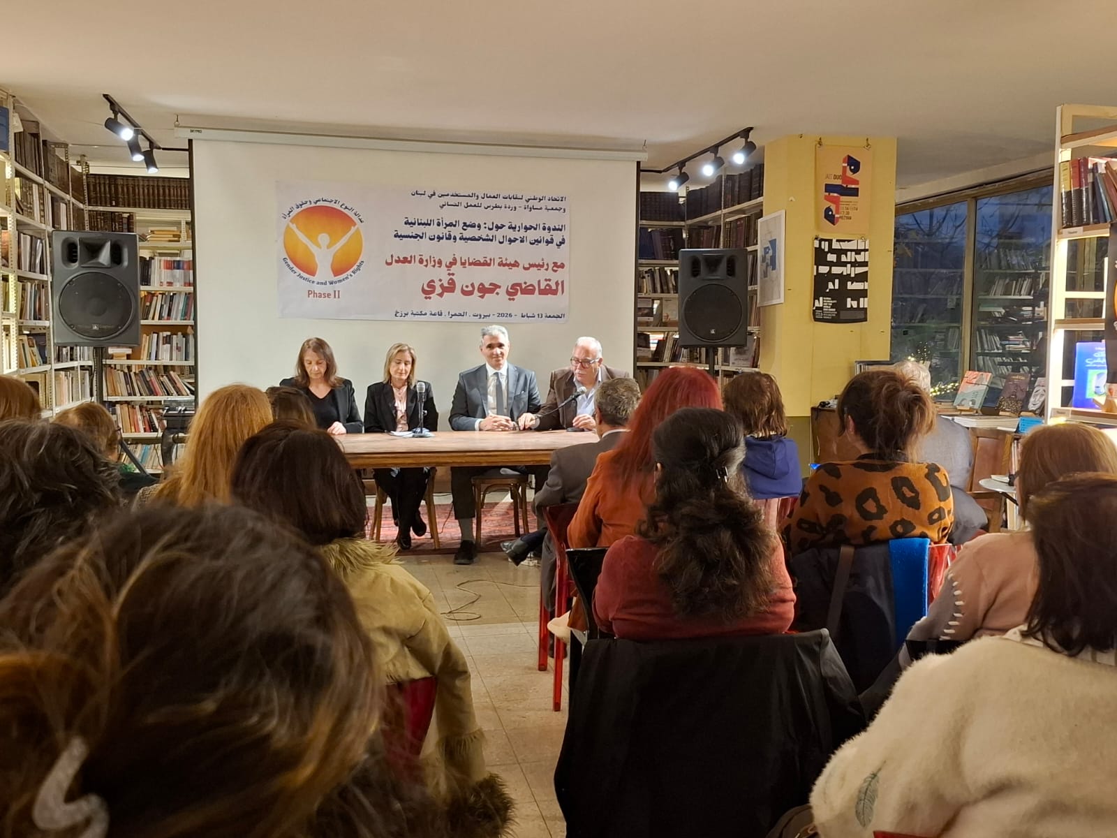 بدعوة من جمعية مساواة- وردة بطرس والاتحاد الوطني لنقابات العمال والمستخدمين في لبنان، أقيم لقاء حواري حاشد تحت عنوان “وضع المرأة اللبنانية في قوانين الأحوال الشخصية وقانون الجنسية”، مع رئيس هيئة القضايا في وزارة العدل القاضي جون قزي.
