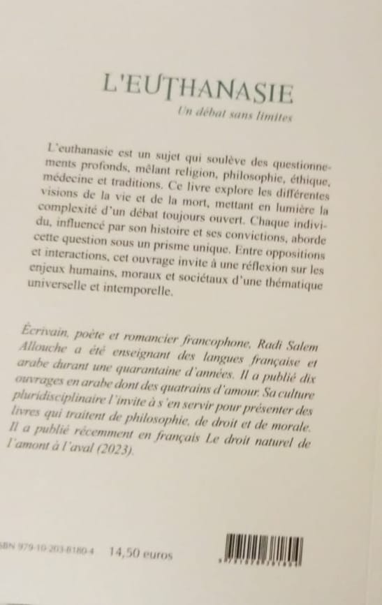 صدر مؤخراً عن دار بودلير في ليون وباريس كتاب للأديب والكاتب اللبناني راضي سالم علوش يحمل عنوان: “الموت الرحيم، نزاع لا حدود له”.