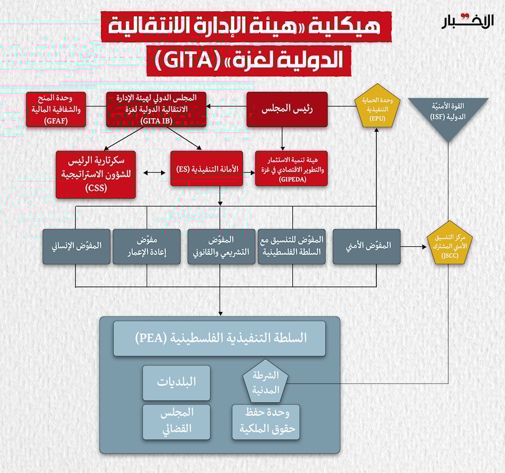 وتبنّت الولايات المتحدة وحلفاؤها – مصر وقطر وتركيا وعدد من الدول العربية والخليجية – فكرة إنشاء سلطة دولية انتقالية في غزة تُعرف باسم «هيئة الإدارة الانتقالية الدولية لغزة» (GITA)، استناداً إلى الرؤية التي أطلقها الرئيس الأميركي، دونالد ترامب، وإلى ورقة المبادئ التي قدّمها رئيس حكومة العدو، بنيامين نتنياهو، في شباط من العام الماضي، إلى «الكابينت» الإسرائيلي.