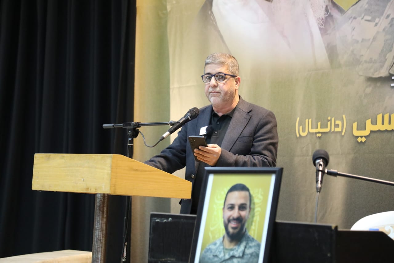 وألقى والد الشهيد الزميل الحاج بهاء الدين النابلسي، كلمةً مُعبِّرة رثى فيها وَلَدهُ الشهيد، مؤكّدًا على الاستمرار في خطِّه ونهجه كما سائر الشـهداء القادة، كما وتخلّل الحفل مجلس عزاء حسيني.