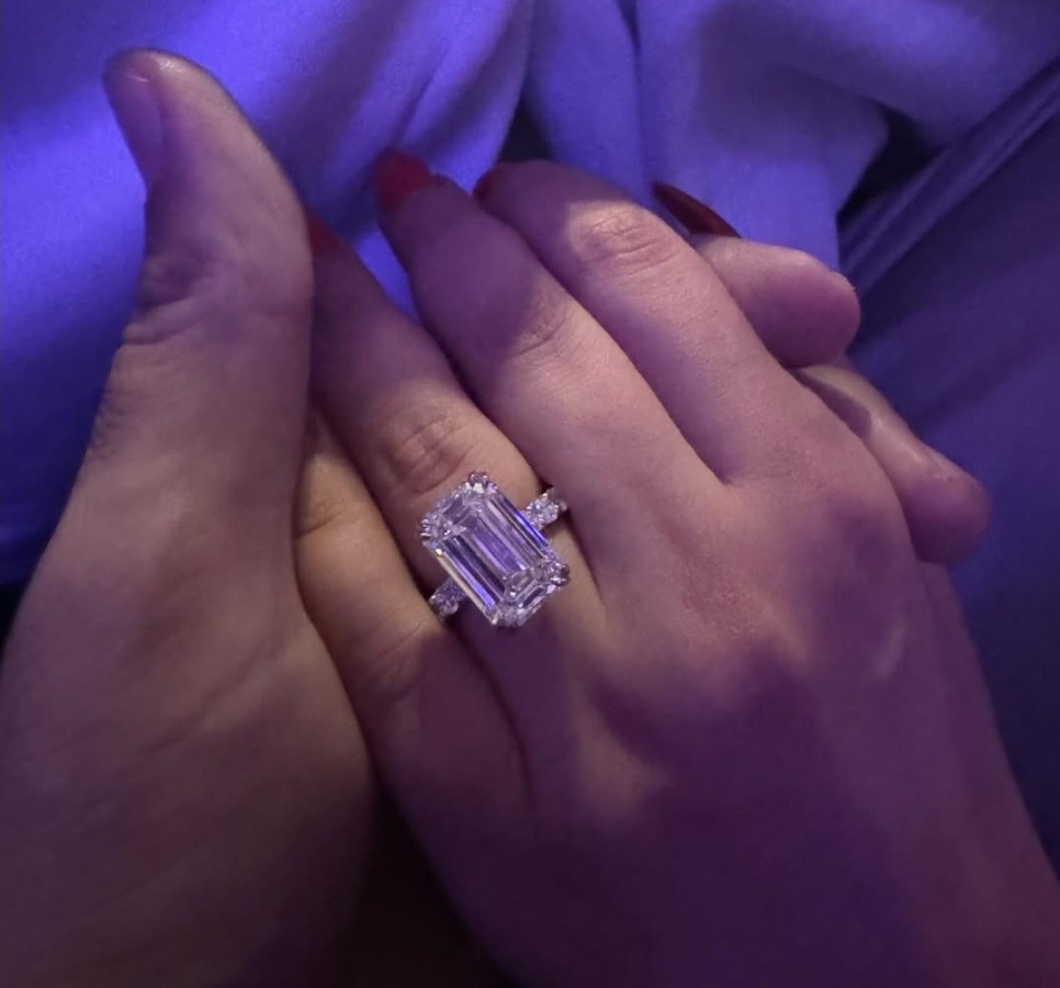 ونشرت الأميرة، البالغة من العمر 31 عاما، صورة للخاتم الذي يؤكد خطوبتها للفنان مونتانا، البالغ من العمر 40 عاما، برموز تعبيرية عبارة عن قلب أبيض وبريق.