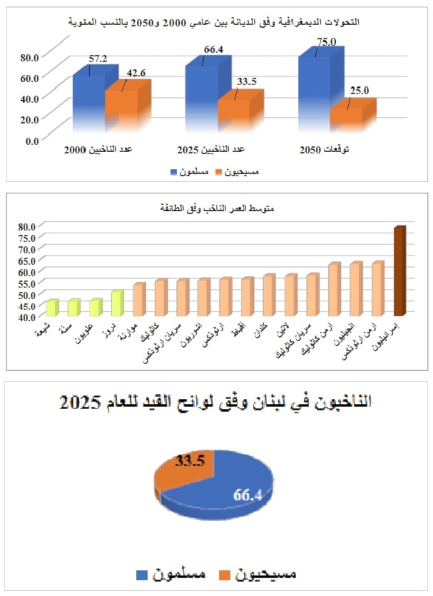 ويؤكّد هذا التفاوت أن التقلّص الديموغرافي في الطوائف الإسلامية يبقى محدوداً من حيث الحجم والأثر مقارنة بما تشهده الطوائف المسيحية، مع توقّع تفوّق عددي شامل للناخبين المسلمين عبر مختلف الفئات العمرية بين عامي 2040 و2042، ولا سيما ضمن الفئة الشابة بين 21 و40 عاماً.
